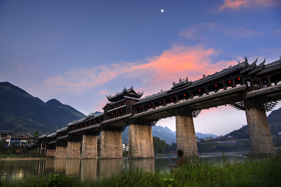 整座濯水風雨廊橋,不僅為世界第一長度的廊橋,在形態上、結構上、工藝上實現了傳統與現代的結合,中式與歐式的結合,東方建筑美學與西方建筑美學的結合,更是傳統木質廊橋與使用膠合木和鋼架相結合的全新的結構方式,實現了建筑上新的探索和嘗試。