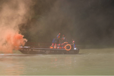 13日上午,參與演練的工作人員在蒲花暗河碼頭前列隊集合,演練由指揮組、應急救援組、醫療救護組、后勤保障組、通訊聯絡組等組成。本次水上應急演練,主要以溺水事故、游船起火事故為案例,對現場警戒、搶險救援、傷員救治等工作進行實戰演練,演練全程嚴肅認真,過程緊張有序,達到演練預期效果,取得了圓滿成功。