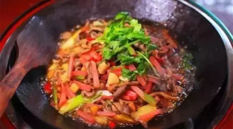 黔江雞雜煮熟后,用文火邊煮邊吃
