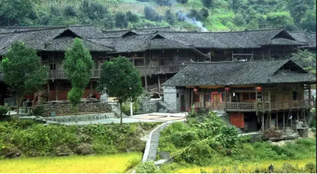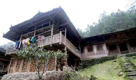 當背靠青山,面對綠水是其最佳選擇,屋基前低后高。所以木結(jié)構的“吊樓”式建筑應運而生樓外有“耍子”安有各式各樣的木欄,保留著土家先民“干蘭”式居屋的遺俗
