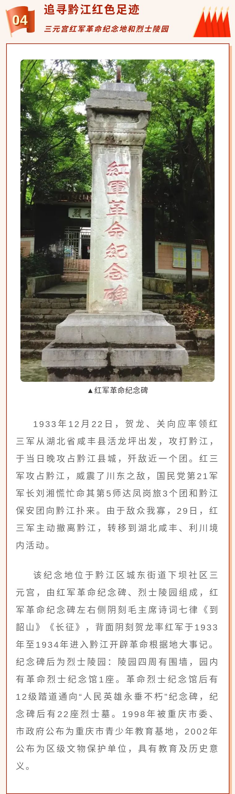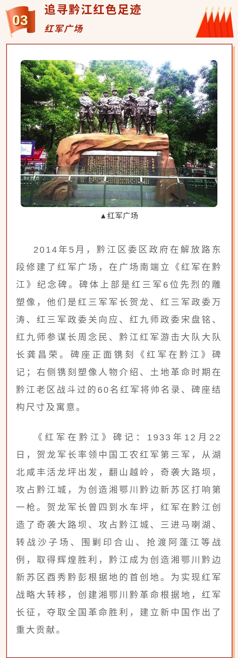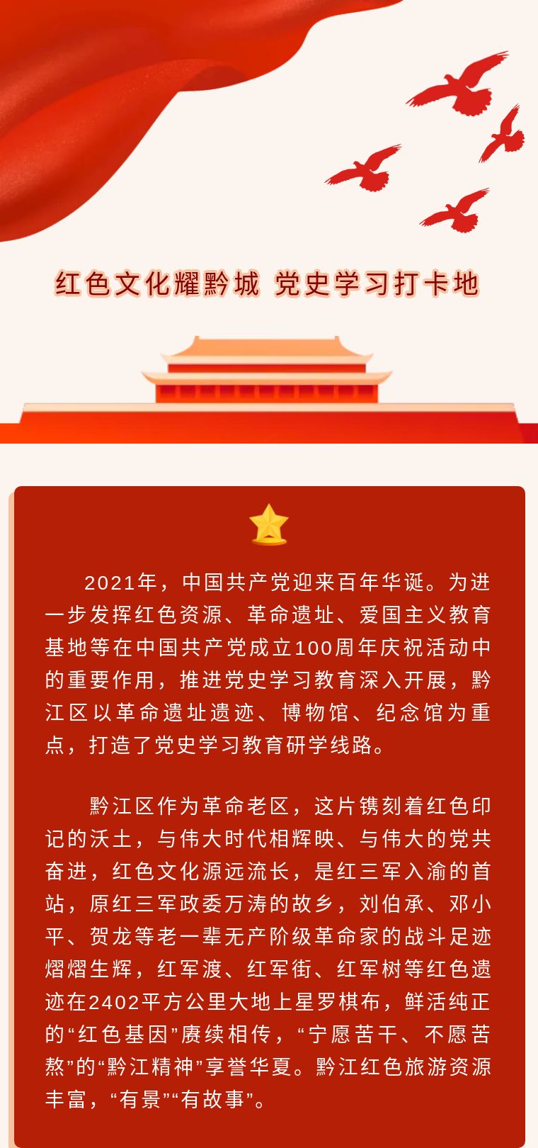 紅色文化耀黔城 黨史學習打卡地 ——黔江學黨史去哪兒線,感受紅色文化!