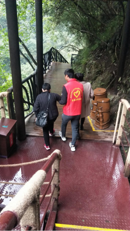 志愿者主動摻扶行動不便的游客