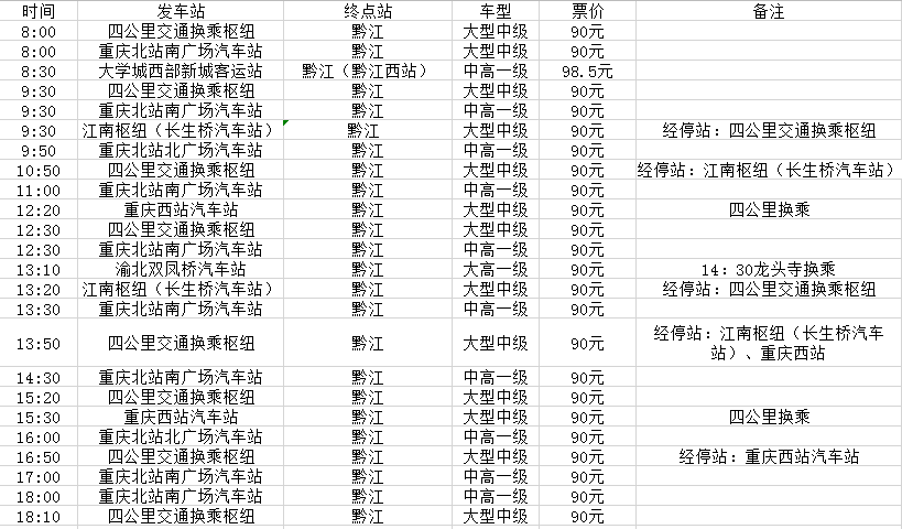 重慶至黔江各大汽車站均有售票 :