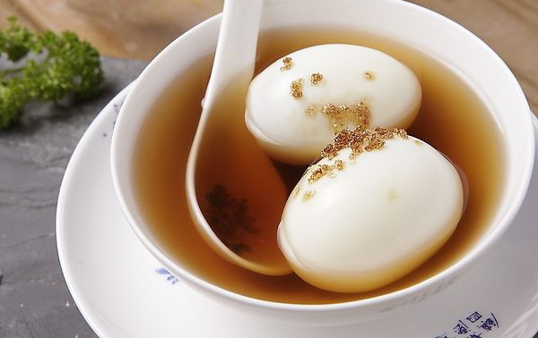配料食油、茶葉、粉絲、蛋片等。用油把茶葉炸黃后加入少量的水煮沸,成褐色茶漿時(shí)再加水稀釋,燒開,投入食鹽,大蒜,胡椒和其它作料,味道可口。